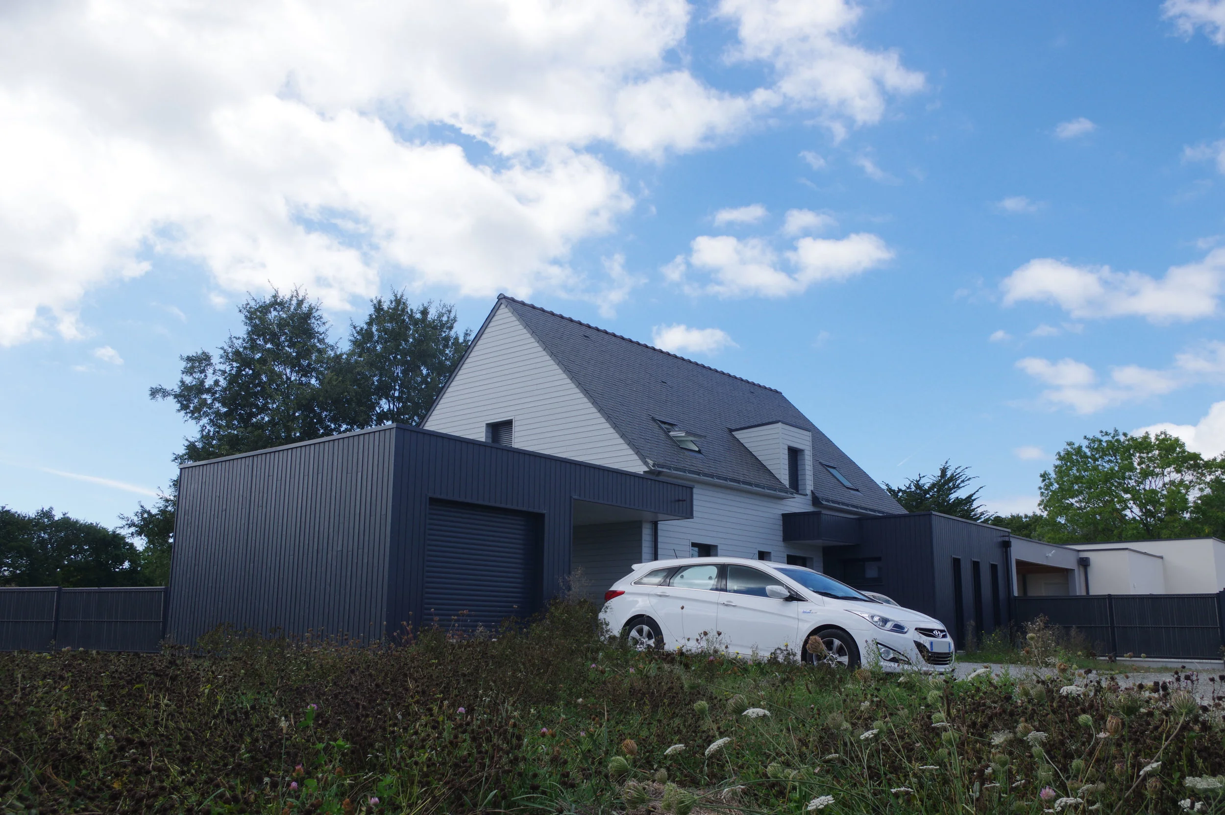 Sur ce terrain situé en ville, ce couple avec 2 enfants voulait une maison lumineuse et ouverte. En discutant avec eux, je leur ai proposé une petite aile spéciale pour que leurs 2 adolescents puissent s'isoler en toute liberté. Ils y ont rajouter un canapé-lit pour leurs invités
